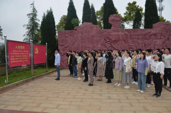 随后,大家来到夏明翰广场,在庄严肃穆的夏明翰烈士浮雕前,在综合党支部秦佳佳老师带领下,再一次庄严宣誓:“我志愿加入中国共产党,……为共产主义奋斗终身,随时准备为党和人民牺牲一切,永不叛党。